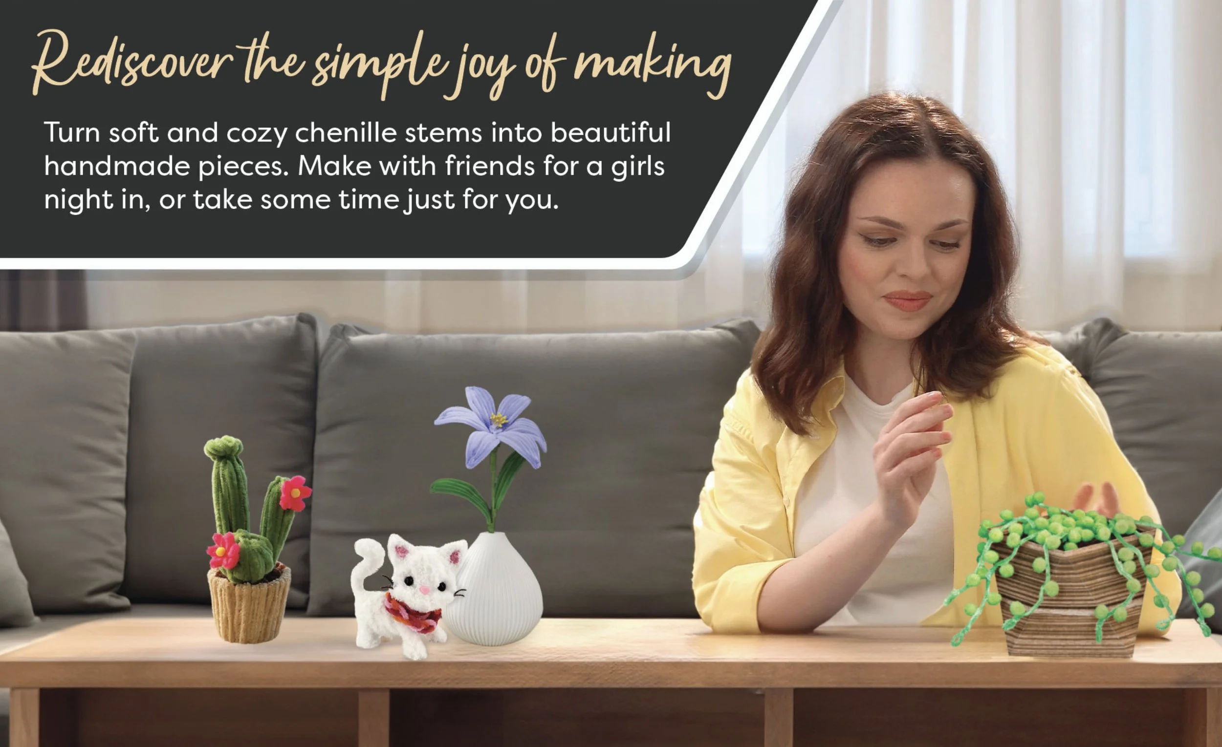 Introducing Cozy Craftworks™: relaxing, feel-good crafts made from soft, colorful chenille stems - just open and go, and in a couple hours, you’ve made easy, lush, beautiful art your way. With easy-to-follow video tutorials and complete kits, you’ll create adorable animals, stunning florals, and charming home décor - no stress, just joy and a quiet moment to yourself or your favorite friend-time. It’s crafting that feels as good as it looks.